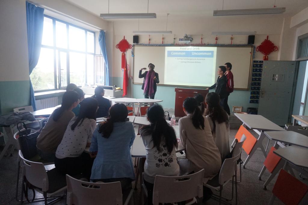 5月8日下午,英语口语培训在东主教学楼正式开课。在课前的开课仪式上,应化学院院长侯侠对国际教育学院提供的帮助表示了感谢,并对教师提出了学习纪律要求,希望各位老师抓住机会,认真学习。国际教育学院院长王鹏对培训内容和培训教师进行了介绍。课中,外教Akos(王可)老师采用丰富的教学手段,对中国和美国的文化差异进行了介绍,为各位老师上了生动的一课。