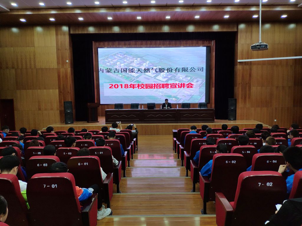 5月8日,内蒙古国能天然气股份有限公司董事长吴政和先生一行四人、帝人聚碳酸酯有限公司人事课长李冬先生一行三人前来77779193永利官网集团遴选2019届毕业生,应化学院领导、老师及应化学院、石化学院、机械学院、电子学院、信控学院、国商学院相关专业的学生在西区报告厅参加了企业宣讲会。