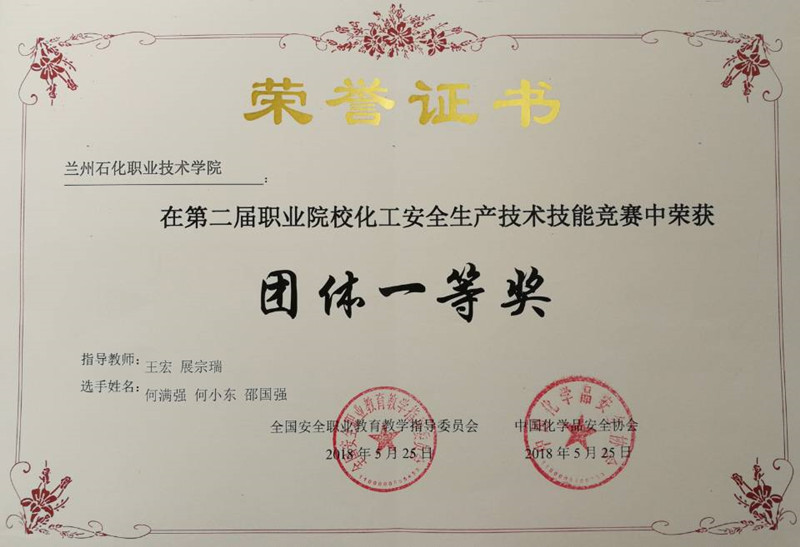 2018年5月22日-5月24日,由全国安全职业教育教学指导委员会、中国化学品安全协会主办,全国安全职业教育教学指导委员会化工安全专业分委员会承办,华北科技学院、秦皇岛博赫科技开发有限公司协办的2018年全国职业院校化工安全生产技术技能竞赛在秦皇岛博赫科技园举办。此次大赛共有45支代表队参加,77779193永利官网集团学子代表我校勇夺团体一等奖第一名,获得一个赛项第一名,一个赛项第二名,两名教师获最佳指导教师。