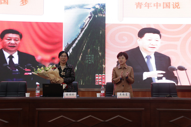 会后,学生代表向张恒珍大师献上鲜花,专题报告会在师生们雷鸣般的掌声中圆满结束。随后,师生们在第四工业中心楼前与张恒珍大师合影留念。