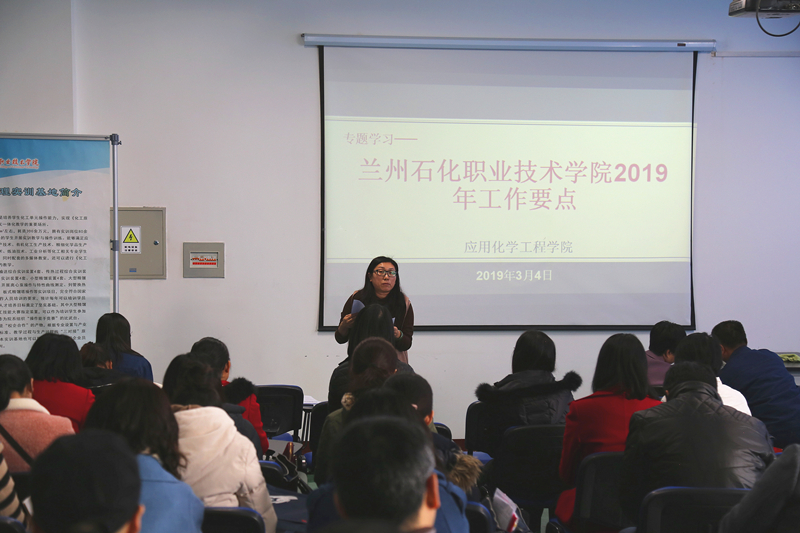 新学期伊始,《兰州石化职业技术学院2019年工作要点》发布后,应化学院积极响应,于3月4日下午在四中心二楼召开全体教职工大会对要点内容进行全面贯彻落实,认真部署2019年度工作任务。