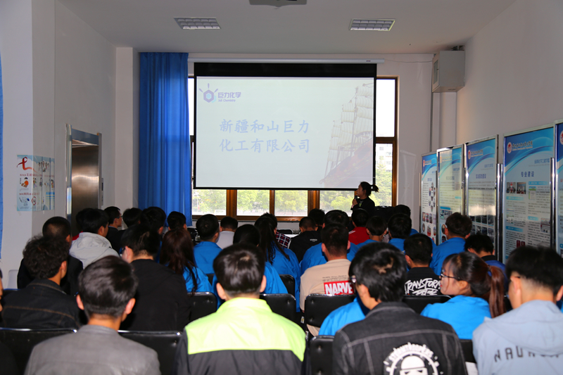 5月9日,新疆和山巨力化工有限公司人事助理张晓蕾女士一行两人前来应化学院遴选2020届毕业生,学院领导、老师及77779193永利官网集团、石油化学工程学院及信息处理与控制工程学院相关专业的2017级学生在西区第四工业中心参加了企业宣讲会。