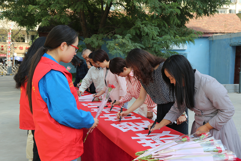 同学们手捧鲜花,彬彬有礼,他们代表全院学生, 为我们可爱可敬的老师,送上最真挚的祝福,老师们也深情地在写有“敬爱的老师,您辛苦了”横幅上签下了自己美好的祝福。一声声“老师,祝您节日快乐!”表达学生对老师的真情和感谢,一枝枝鲜花,一声声祝福,一份份真情,沁人心脾,感人肺腑,在清晨的阳光中,每一位老师都倍感温暖!