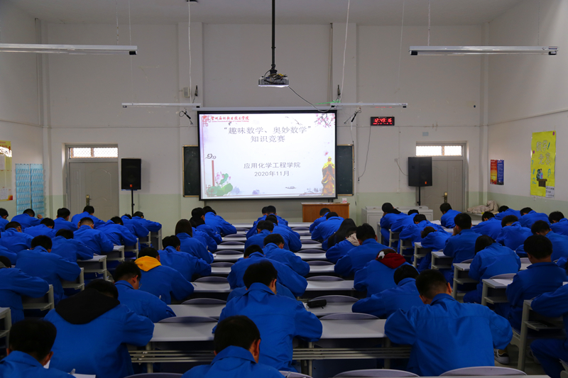 竞赛采取限时笔试的方式,分为高中数学和高等数学两组,题型涵盖选择题、填空题、解答题,内容涉及集合、函数、数列、平面解析几何、立体几何等。竞赛从发下试卷的这一刻开始,教室里似乎就只剩下了一片笔尖划过纸面的“沙沙”声存在于空气里,有的同学眉头紧促,有的同学写写停停,有的奋笔疾书。考试结束后,经过认真的批阅,最终应化202班的李杰获一等奖、化工205班的张成鑫和化工205班的陈子奇获二等奖、安全201班的顾静、化工技术201班的何生强和安全201班的马成获三等奖、化工技术203的尹剑峰、应化203班的郑亚婷、化工技术202班的张婷婷、化工技术206班的车建清、化工技术206班的王宗文获得优秀奖。