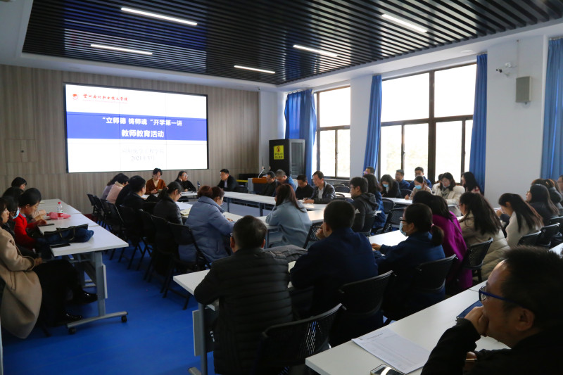 为深入贯彻落实学校关于开展“立师德铸师魂开学第一讲教师教育活动”的工作要求,进一步加强教师师德师风建设,提高教师的法制意识,规范教师职业行为,落实立德树人根本任务,3月1日下午,应化学院组织全体教师开展了开学第一讲教师教育活动。