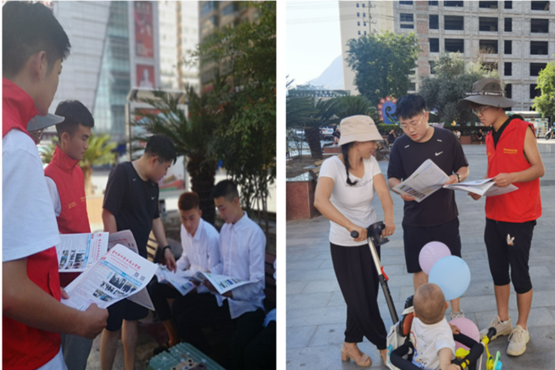 支教活动结束后,三下乡小分队赴武都区各人流量较大的地点开展招生宣传活动,全体队员均积极参与。宣传之前,吴海霞召开了一个简短的会议,向队员讲解了相关注意事项并发放了宣传资料。在指定的宣传地点,小分队成员对家长们和高中生进行了我校招生政策的介绍以及主要专业的宣传。