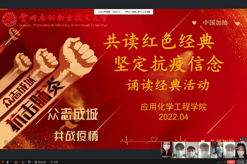 此次网上经典诵读活动,学院的诵读爱好者通过不同形式的表演,以诗歌为媒介,以咏诵相酬和,品味中华传统文化的深沉积淀,讴歌革命先烈的崇高精神,弘扬伟大的抗疫精神。最终获得一等奖的是有机211王庆同学,获得二等奖的是应用化工214马旭辉、金佳蓉同学,获得三等奖的是无机211班买热哈巴·艾力、化工安全211彭鑫、和沛同学,获得优秀奖的是中泰应化211王银强、有机211路璐、杨嘉琦、范丹丹同学。