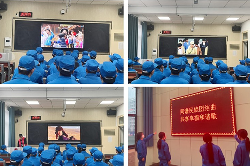 三是组织开展“爱国电影大家看”网上观影活动。组织观看民族团结进步教育影片《冰山上的来客》、《真爱》、《生根》等,深入宣扬民族团结的主旋律。观影过程中,同学们被超越血脉和民族的真挚情感深深打动,也更加坚定了大家维护祖国统一、维护民族团结的信心和决心。四是开展民族团结进步主题班会,以“民族团结一家亲,同心共筑中国梦”为主题,各班级组织开展内容丰富、形式多样的主题班会,有的班级学生学唱一首民族团结的歌曲;有的组织发表了自己的看法和见解,真情帮助在学业和生活上有困难的少数民族学生。最后班级吟唱了《五十六个民族五十六枝花》,为本次活动画上了一个圆满的句号。