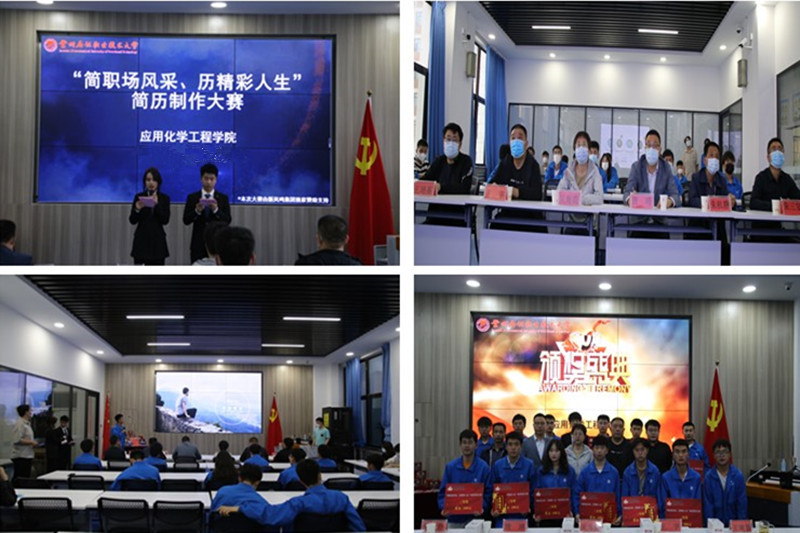 经过激烈的角逐后,获得本次比赛一等奖的是应化204班陈攀峰;获得二等奖的是应化206班卢靖宇、应化201班刘瑞;三等奖的是巴斯夫201班王文波,有机201班丁亚斌、李新强,应化202班蒲昊,应该204班刘佳仪,精细201班刘亚军、敏赟,化工安全202班董志鹏,煤化201万彦峰;以及优秀奖煤化201张光宁,安全201马勇。出席比赛的评委老师为获奖同学颁奖,并与选手合影留念。本次活动提高了我院学生的简历制作能力,为同学们提供一个展示自我的平台,为后续高质量就业打下坚实的基础。