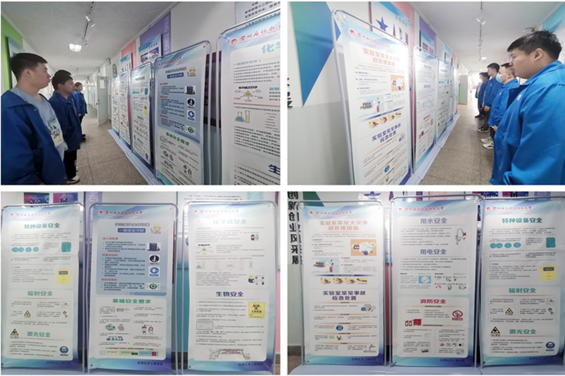 安全教育知识展板内容主要包括四个部分:实验(训)室安全须知、实验(训)室安全制度、实验(训)室应急预案、实验(训)室事故案例。通过此次展览,丰富了我院师生的实验(训)室安全知识,增强了我院师生的安全责任意识,有利于创造和维护安全、和谐、文明、美丽的教学科研实验(训)环境。