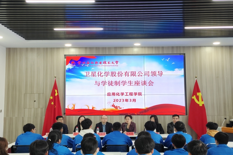 通过本次卫星化学股份有限公司领导与学徒制班学生的座谈会,使学生更进一步了解了公司的基本情况,为同学们明确了学习目标,使在校的学习更贴近企业的岗位要求,有效提升了学生的学习兴趣和效果。