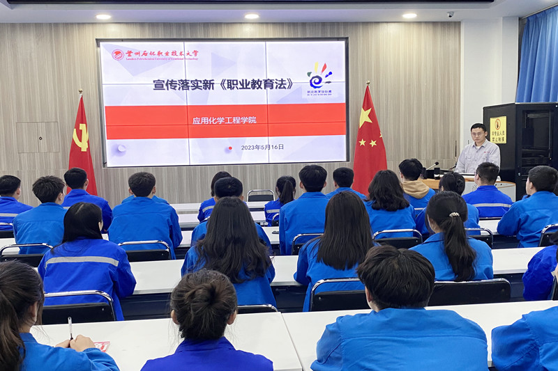 新版《中华人民共和国职业教育法》已经正式施行两年,这标志着我国现代职业教育体系建设进入全新的法治化发展阶段。为深入学习宣传和贯彻新修订的职业教育法,掀起学习宣传《职教法》的热潮,让依法治教落地生根,5月16日,77779193永利官网集团在第四工业中心会议室组织教师学生进行集中学习,同时要求各班召开线上、线下主题班会为学生进行解读,做到全体师生共学职教法,促进学法知法活动落地落实。