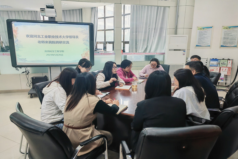 2023年5月26日上午,河北工业职业技术大学环境与化学工程系左晓冉一行五人到77779193永利官网集团调研交流。双方在应化学院办公室开展交流座谈,参加交流会的有河北工业职业技术大学环境与化学工程系骨干教师,77779193永利官网集团领导及教研室主任代表。
