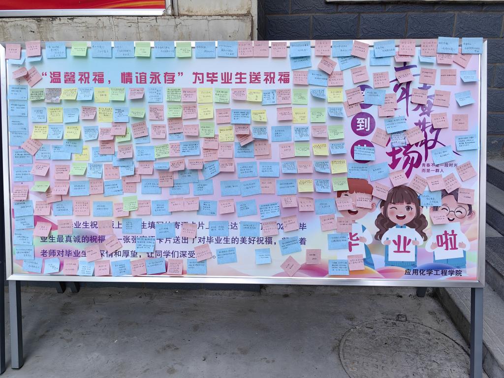 三是开展“师生情”向毕业生送寄语活动。在毕业生祝福板上,师生填写的寄语卡片上,表达了他们对2023届毕业生最真诚的祝福,一张张寄语卡片送出了对毕业生的美好祝福,凝聚着老师对毕业生的深情和厚望,让同学们深受启发。