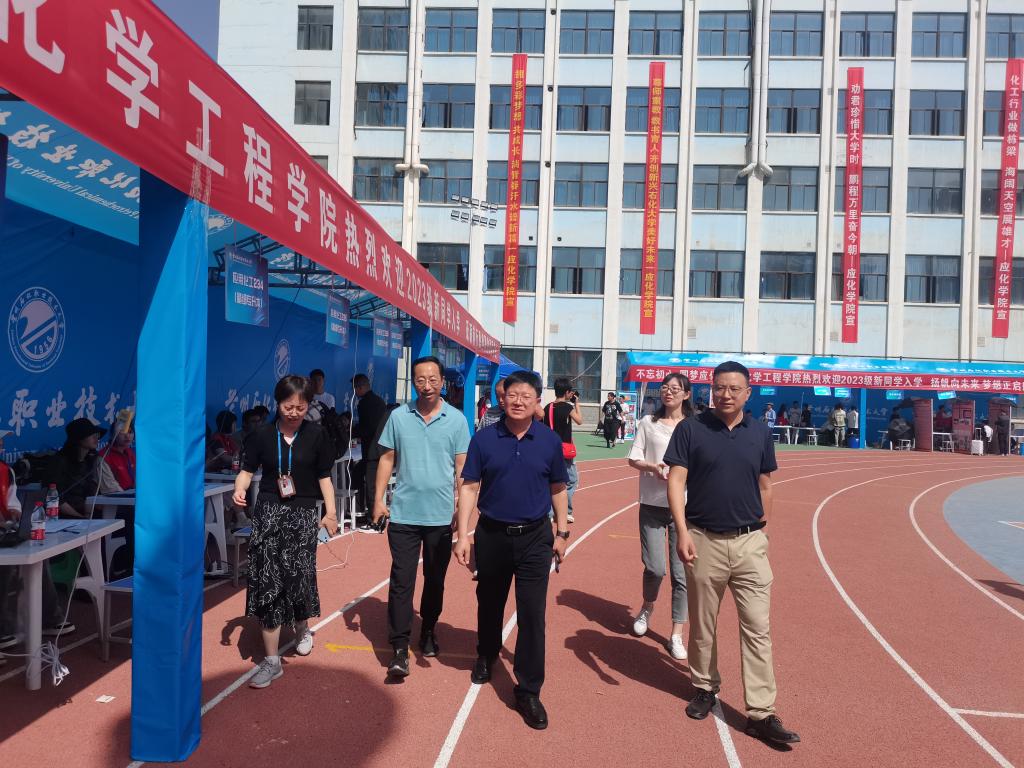 学校领导亲临现场看望师生,嘱托志愿者,迎新不仅要有周全服务,更要让同学们感受到石化大学的自豪,树立职业教育的自信,从一开始给同学在心里种下担当强国建设、民族复兴责任的种子,帮助新同学系好人生第一粒扣子。除此之外,学校领导还详细了解和询问了新生报到情况,检查并指导学院做好各项服务工作,保障新生顺利入学。
