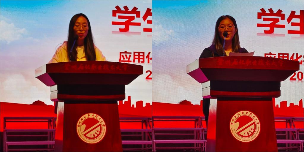 会上,2023年全国职业院校技能大赛(高职组)化工生产技术赛项团队一等奖获得者王丽同学和2022年中国国际互联网+国赛银奖获得者魏邦婧同学分别作了发言,两位同学的发言充分展示了职业院校学生的优秀素质和综合能力,也赢得了与会师生的一致赞赏。他们的表现也激励了更多的学生努力学习和拼搏,实现自己的梦想和目标。