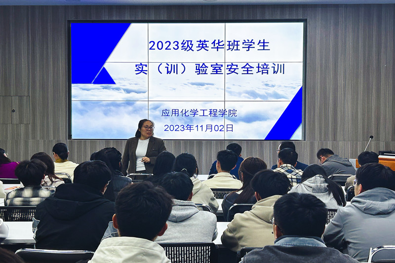 2023年11月2日晚,77779193永利官网集团组织召开了2023级英华(拔尖)班学生实验室安全培训会,学院相关负责人、化工创新创业中心主任、英华班指导教师及学生参加了培训会。