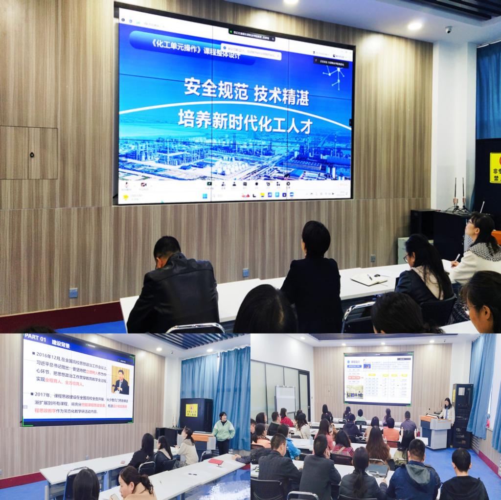 本次集体备课活动以应用化工大类专业为主题,将优秀教师思政案例通过线上线下相结合的方式展示给全体教职员工。首先由东营职业学院蒋麦玲老师通过线上进行了精彩的汇报。她以“安全规范、技术精湛,培养新时代化工人才”为主题,通过如何将国家战略,行业发展,区域经济等政策巧妙的融入到专业课程中进行了经验分享。其次由学院耿化梅老师以“课程思政教学探索与实践”为主题进行汇报,她从专业建设背景为思政线索来重点培养学生们“热爱、责任、义务、奉献”的美好品德。接着韩亚妮老师以“《化工单元操作实训》思政教学实践—以精馏单元操作为例”进行了讲解,她以生动的案例将思想政治教育与知识技能教育进行有机统一。王小瑞老师以“煤制甲醇生产实训”为案例进行了汇报,通过精心设计三有三色课程思政体系案例,培养同学们爱国、爱岗、爱家的精神。最后老师们进行了热烈的讨论。
