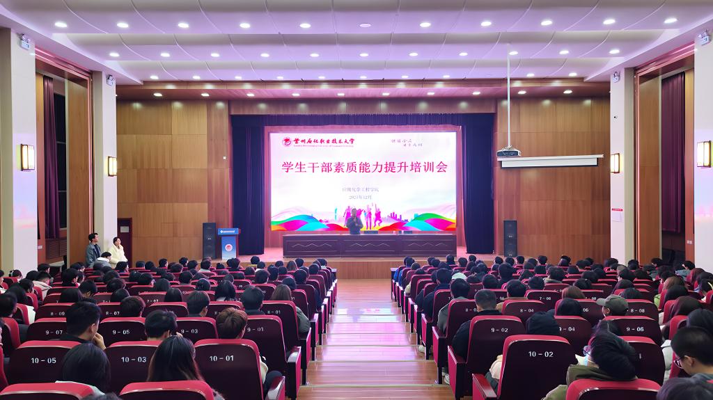 为进一步加强学生干部思想意识,提高工作素养,12月3日晚,应化学院在西区报告厅举办了学生干部素质能力提升专题培训。学院团总支学生会全体干部和干事,2022级、2023级全体班级的班长和团支部书记等300余名学生干部参加了培训。