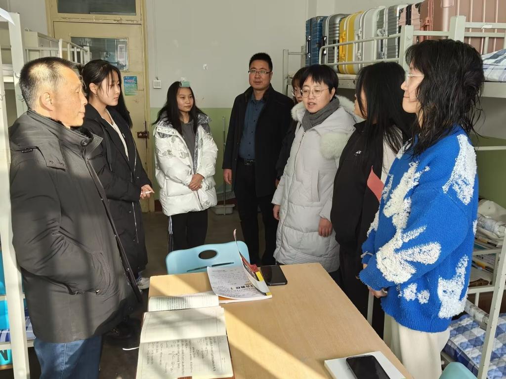 走访活动中,领导老师深入学生宿舍,与同学们通过亲切交谈,获悉了假期返校以来,同学们学习、生活状态的调整情况,解答了同学们在学习、生活方面遇到的问题,有针对性地向毕业班同学了解就业情况,宣传了征兵入伍政策,引导他们树立正确的就业观,叮嘱同学们增强安全意识,防范电信诈骗,积极遵守学校及学生公寓各项管理规章制度,养成良好的生活作息,培养健康文明、积极向上的生活习惯,劳逸结合,新学期“百尺竿头,更进一步”。同学们纷纷表示,新学期将立足新起点,以实际行动夯基础、学知识、强技能、练体魄,努力提升自身能力素养和身体素养,不辜负老师的殷切期望。