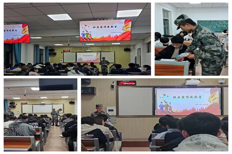 一是征兵宣传进班级。为烘托征兵宣传氛围,征兵宣讲员们深入班级开展征兵宣讲,并在教学楼前设置征兵宣传海报,向前来咨询的同学详细介绍应征入伍条件、报名方式、入伍流程以及大学生参军入伍优待政策等相关内容,进一步激发同学们携笔从戎,用满腔热血助力强军兴军伟业。