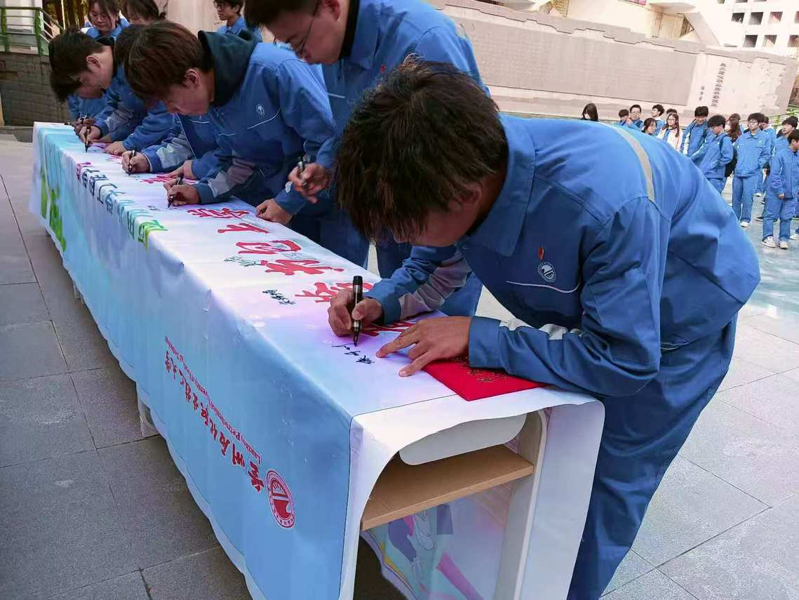 随后,活动进入庄重而热烈的签名仪式环节。同学们纷纷有序走上前,在印着活动主题的宣传布上郑重签下自己的姓名。笔尖落下的不仅是一个个名字,更是对“背着书包上学”理念的由衷认同与坚定支持,是一份对勤学笃行的自我承诺,以此进一步督促自己在今后的学习道路上,始终怀揣初心、脚踏实地,将这一理念融入到日常学习中。
