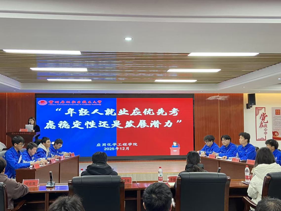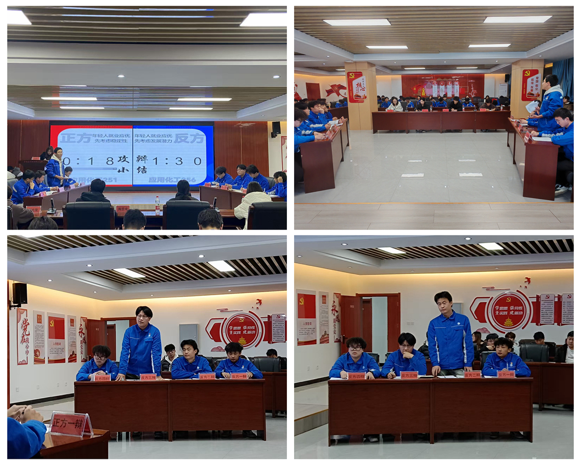 决赛现场氛围热烈非凡,聚焦“年轻人就业应优先考虑稳定性还是发展潜力”这一贴近当代青年成长实际、极具现实意义的辩题,上演了一场精彩绝伦的思想交锋。正方应用化工251班坚定主张“就业应优先考虑稳定性”,从职业规划、生活保障等维度层层递进展开论证;反方应用化工256班则秉持“就业应优先考虑发展潜力”的观点,围绕个人成长、价值实现等方面深入剖析。